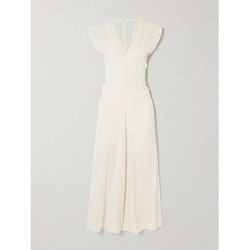 Пошита сукня міді без рукавів кольору слонової кістки з глибоким V